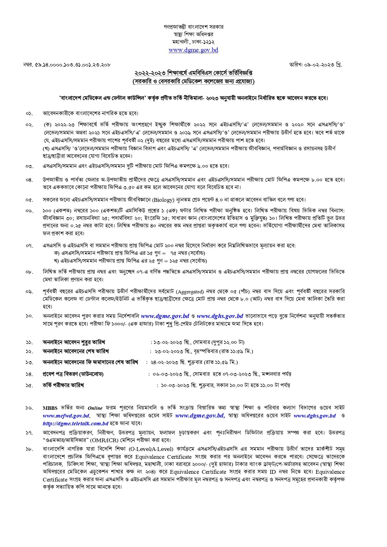 ২০২২-২৩ শিক্ষাবর্ষে এমবিবিএস কোর্সে ভর্তিচ্ছু ছাত্র-ছাvত্রীদের বিস্তারিত নির্দেশনা।