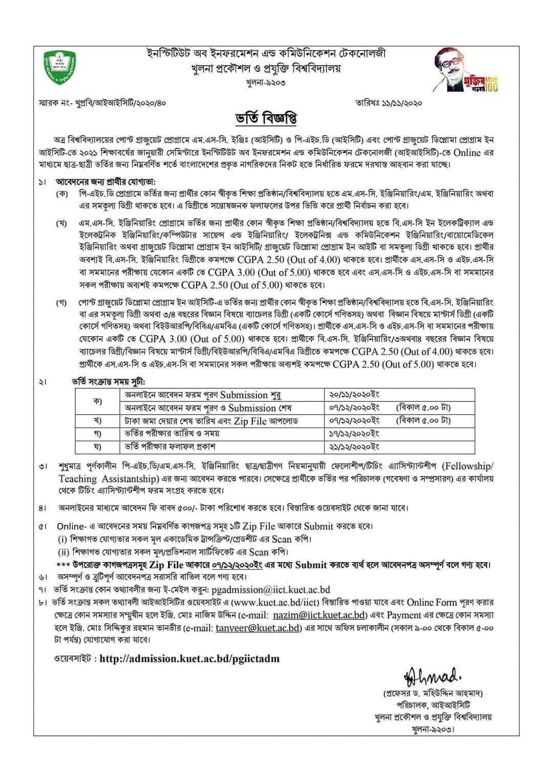 Website- http://admission.kuet.ac.bd/pgiictadm