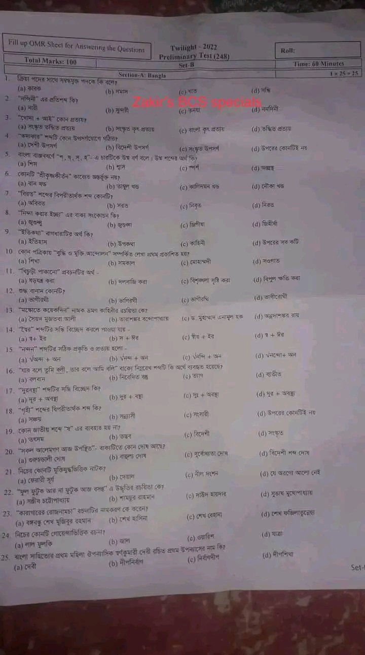 আজকে অনুষ্ঠিত হওয়া বাংলাদেশ ব্যাংকের সহকারী পরিচালক পদের পরীক্ষার প্রশ্নের বাংলা ভাষা ও সাহিত্য অংশের সমাধান: