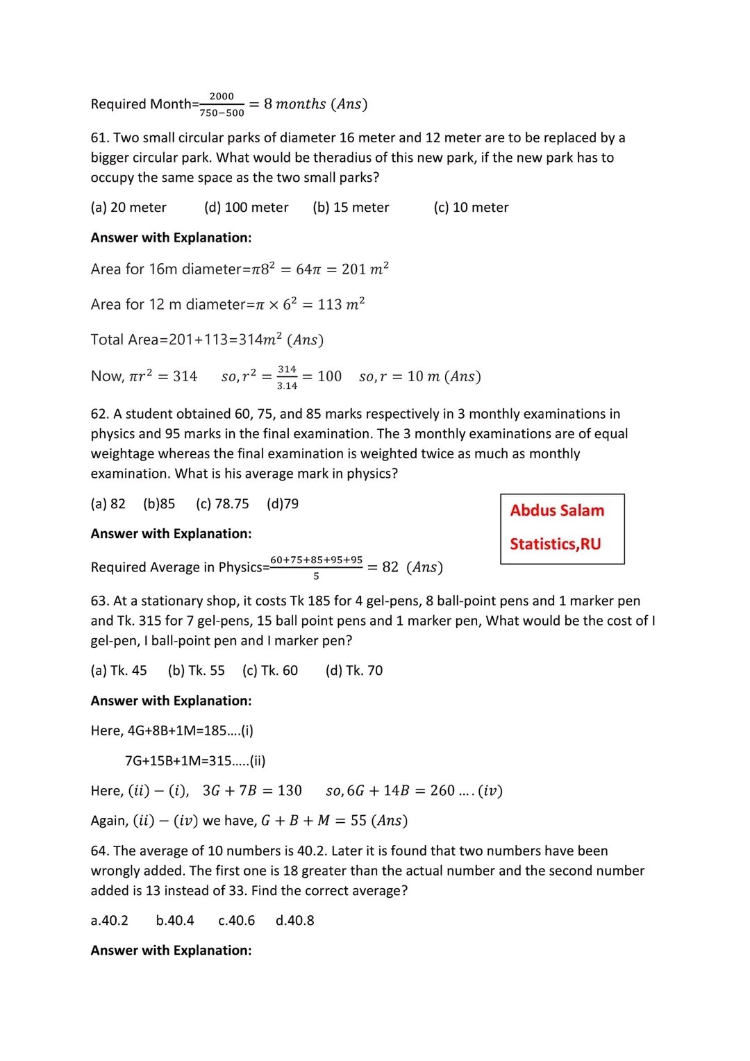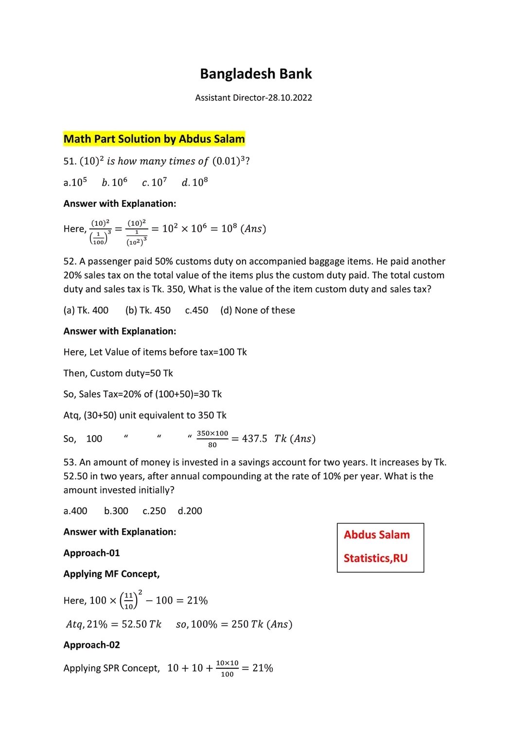 আজকে অনুষ্ঠিত হওয়া বাংলাদেশ ব্যাংকের সহকারী পরিচালক পদের পরীক্ষার প্রশ্নের গাণিতিক যুক্তি অংশের সমাধান