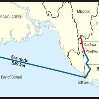 পূর্বাঞ্চলীয় সাতটি রাজ্যের সাথে যোগাযোগের জন্য দিল্লির কাছে বাংলাদেশ ব্যতীত অন্য আরেকটি সহজ মাধ্যম হলো মায়ানমার। কলকাতা থেকে সমুদ্রপথে মায়ানমারের সিওটা বন্দর হয়ে সহজে ভারতীয় ভূখণ্ড মিজোরামে প্রবেশ করা যাবে। … (ইমেজঃ ১)